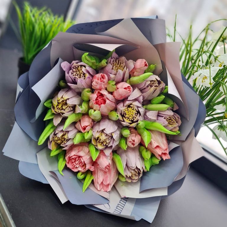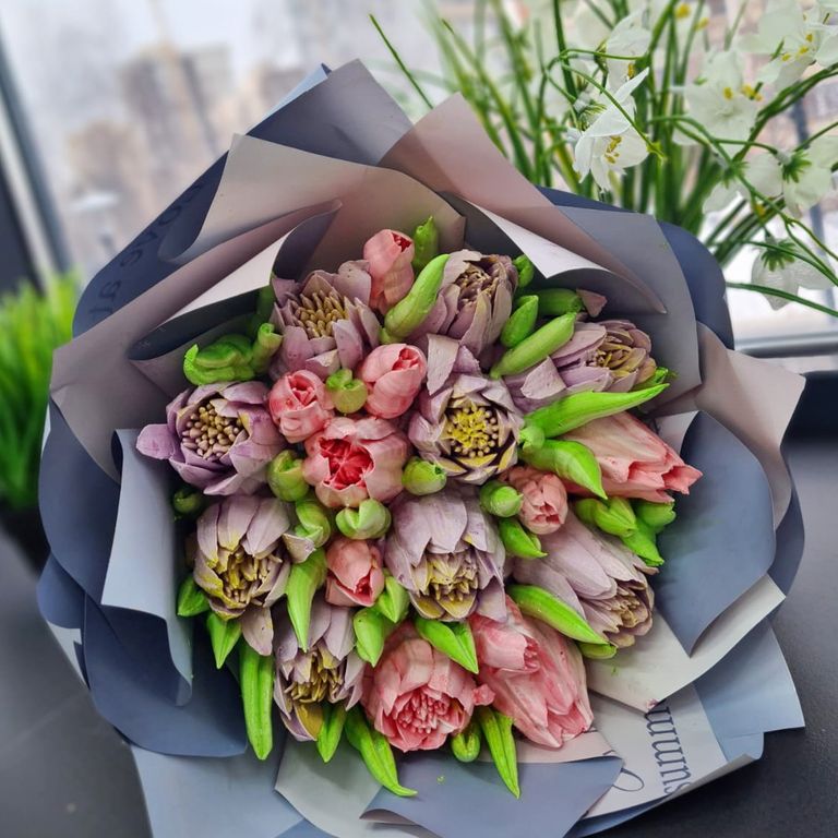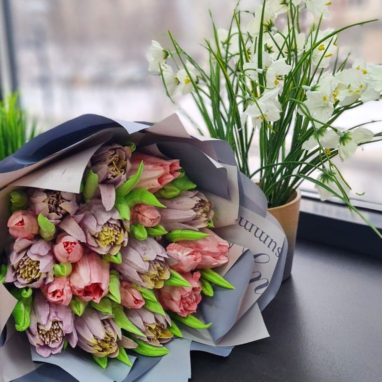 Состав букета может быть частично изменён в зависимости от сезонности составляющих, при этом сохраняется стилевая концепция букета. Итоговое исполение букета может незначительно отличаться от фотографии размещенной на Сайте.
