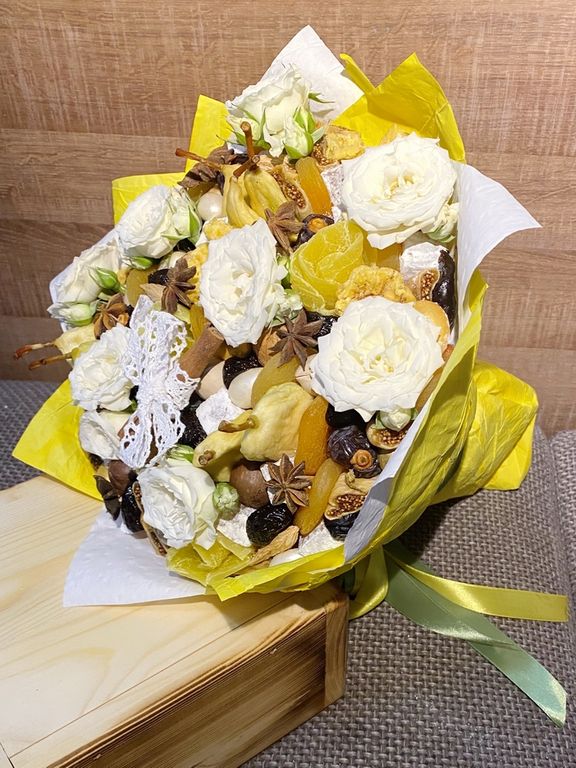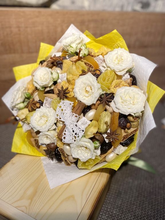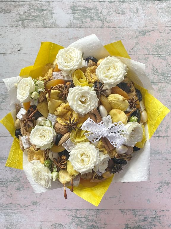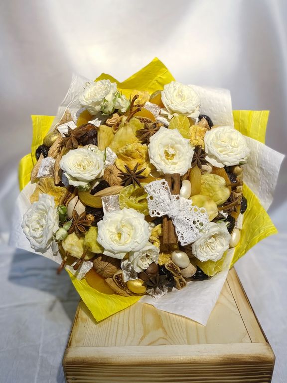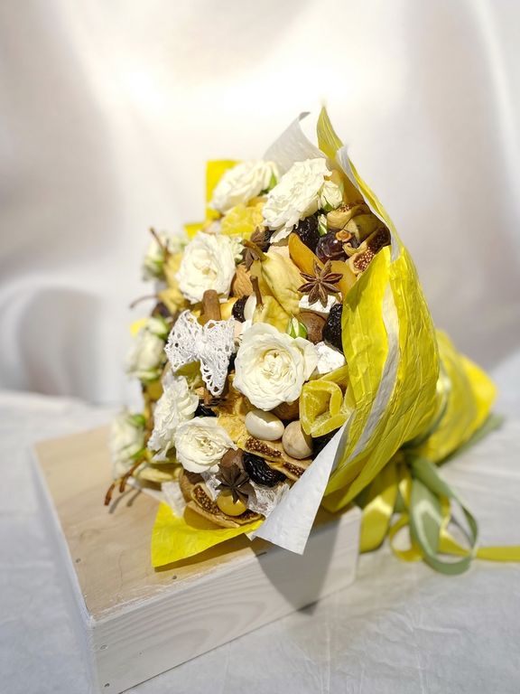 Состав букета может быть частично изменён в зависимости от сезонности составляющих, при этом сохраняется стилевая концепция букета. Итоговое исполение букета может незначительно отличаться от фотографии размещенной на Сайте.