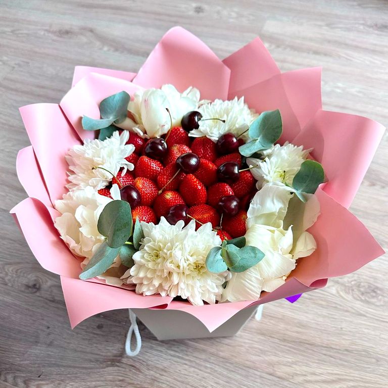 Состав букета может быть частично изменён в зависимости от сезонности составляющих, при этом сохраняется стилевая концепция букета. Итоговое исполение букета может незначительно отличаться от фотографии размещенной на Сайте.
