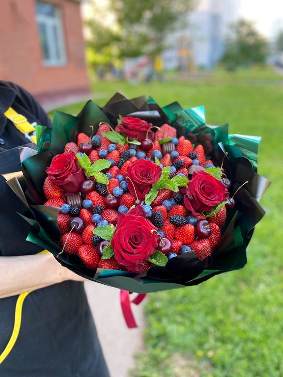 Состав букета может быть частично изменён в зависимости от сезонности составляющих, при этом сохраняется стилевая концепция букета. Итоговое исполение букета может незначительно отличаться от фотографии размещенной на Сайте.