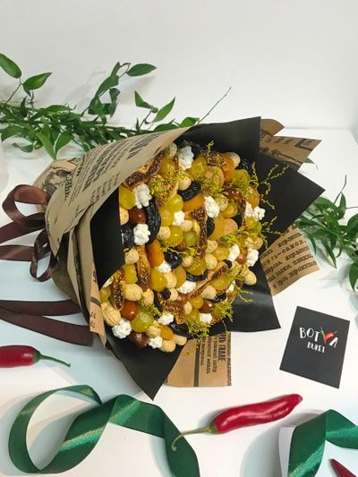 Состав букета может быть частично изменён в зависимости от сезонности составляющих, при этом сохраняется стилевая концепция букета. Итоговое исполение букета может незначительно отличаться от фотографии размещенной на Сайте.