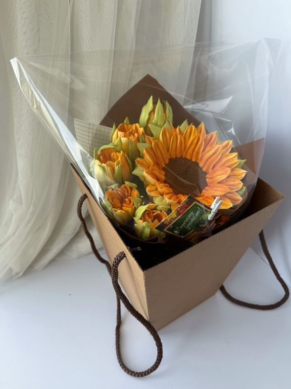 Состав букета может быть частично изменён в зависимости от сезонности составляющих, при этом сохраняется стилевая концепция букета. Итоговое исполение букета может незначительно отличаться от фотографии размещенной на Сайте.