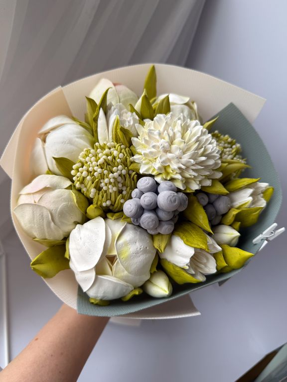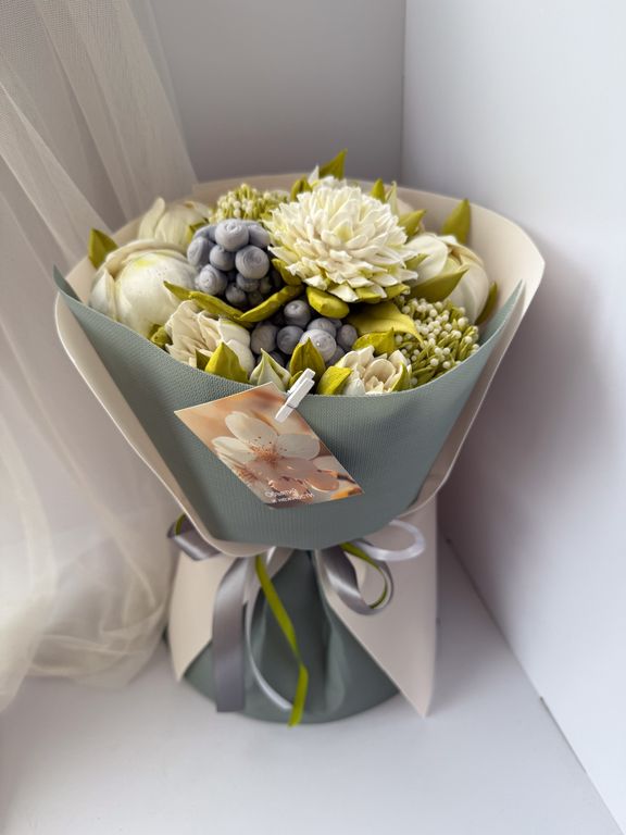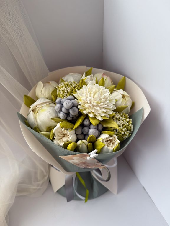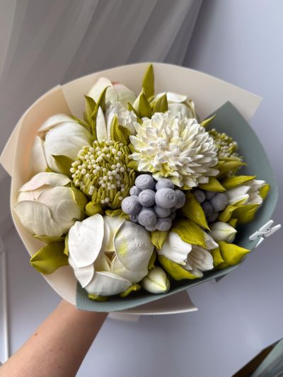 Состав букета может быть частично изменён в зависимости от сезонности составляющих, при этом сохраняется стилевая концепция букета. Итоговое исполение букета может незначительно отличаться от фотографии размещенной на Сайте.