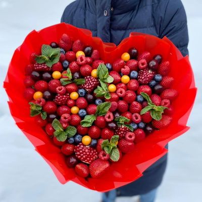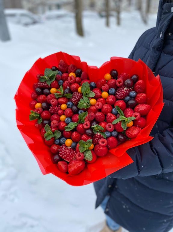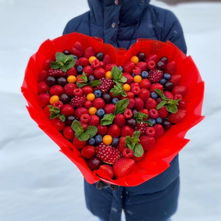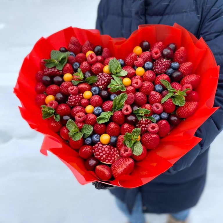 Букет "Ягодное сердце с физалисом"