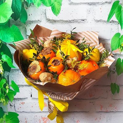 Состав букета может быть частично изменён в зависимости от сезонности составляющих, при этом сохраняется стилевая концепция букета. Итоговое исполение букета может незначительно отличаться от фотографии размещенной на Сайте.