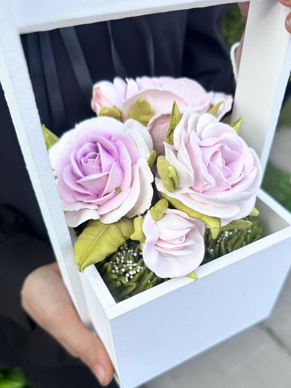 Состав букета может быть частично изменён в зависимости от сезонности составляющих, при этом сохраняется стилевая концепция букета. Итоговое исполение букета может незначительно отличаться от фотографии размещенной на Сайте.