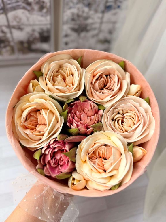 Состав букета может быть частично изменён в зависимости от сезонности составляющих, при этом сохраняется стилевая концепция букета. Итоговое исполение букета может незначительно отличаться от фотографии размещенной на Сайте.